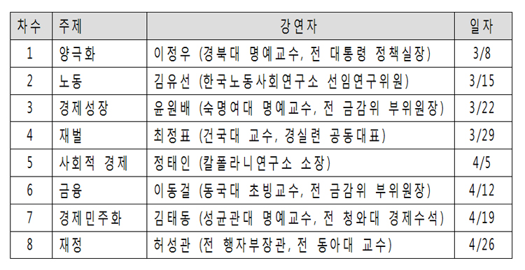 o 노동조합 간부, 한국경제에 관심 있는 시민은 누구나 참여 가능