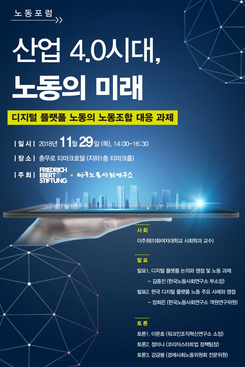 [노동포럼] 산업4.0 시대, 노동의 미래 - 디지털 플랫폼 노동의 노동조합 대응 과제 안내