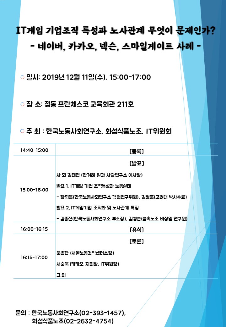 □ 주최: 한국노동사회연구소, 화섬식품노조, IT위원회