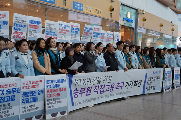 2004년 4월 1일 KTX의 운행이 시작되었고, 전 국민의 관심과 기대에 못 미치는 모든 것들은 승무원들에게 민원으로 전달되었다. 왜 300Km로 달리지 않는가, 왜 거꾸로 가는가, 왜 이리 시끄러운가, 욕설과 폭행, 성희롱에 그대로 노출되었지만 회사는 책임지지 않았다. 그저 참으라는 말뿐이었다. 하지만 정작 참을 수 없는 것은 승무원 간접고용이 불법파견임이 불거지자 안전업무에서 배제하고, 교육도 사라지고 철도공사 소속 열차팀장과의 소통마저 막아버리는 처사였다.