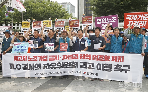 2017년 5월 시민들의 열망으로 만들어진 문재인 정부는 대선공약 및 100대 공약과제로 국제노동기구ILO 핵심 협약의 비준을 제시했다. 그리고 ILO 100주년인 2019년에 핵심 협약을 비준하겠다고 약속한 바 있다.