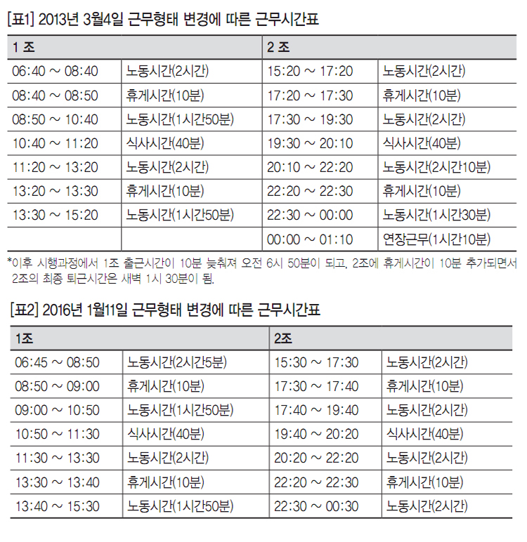 근무형태 변경 이후 조합원들이 겪은 변화