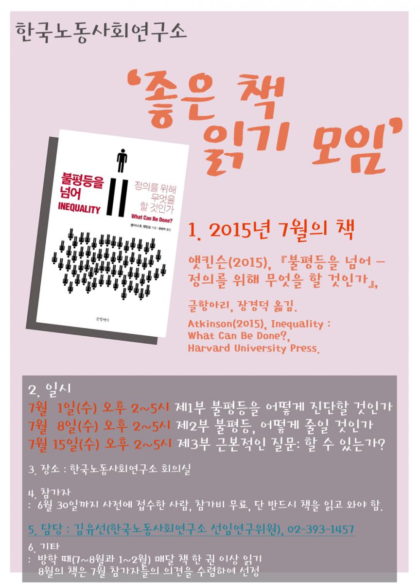 연구소는 오는 7월부터 좋은 책 읽기 모임을 진행합니다.